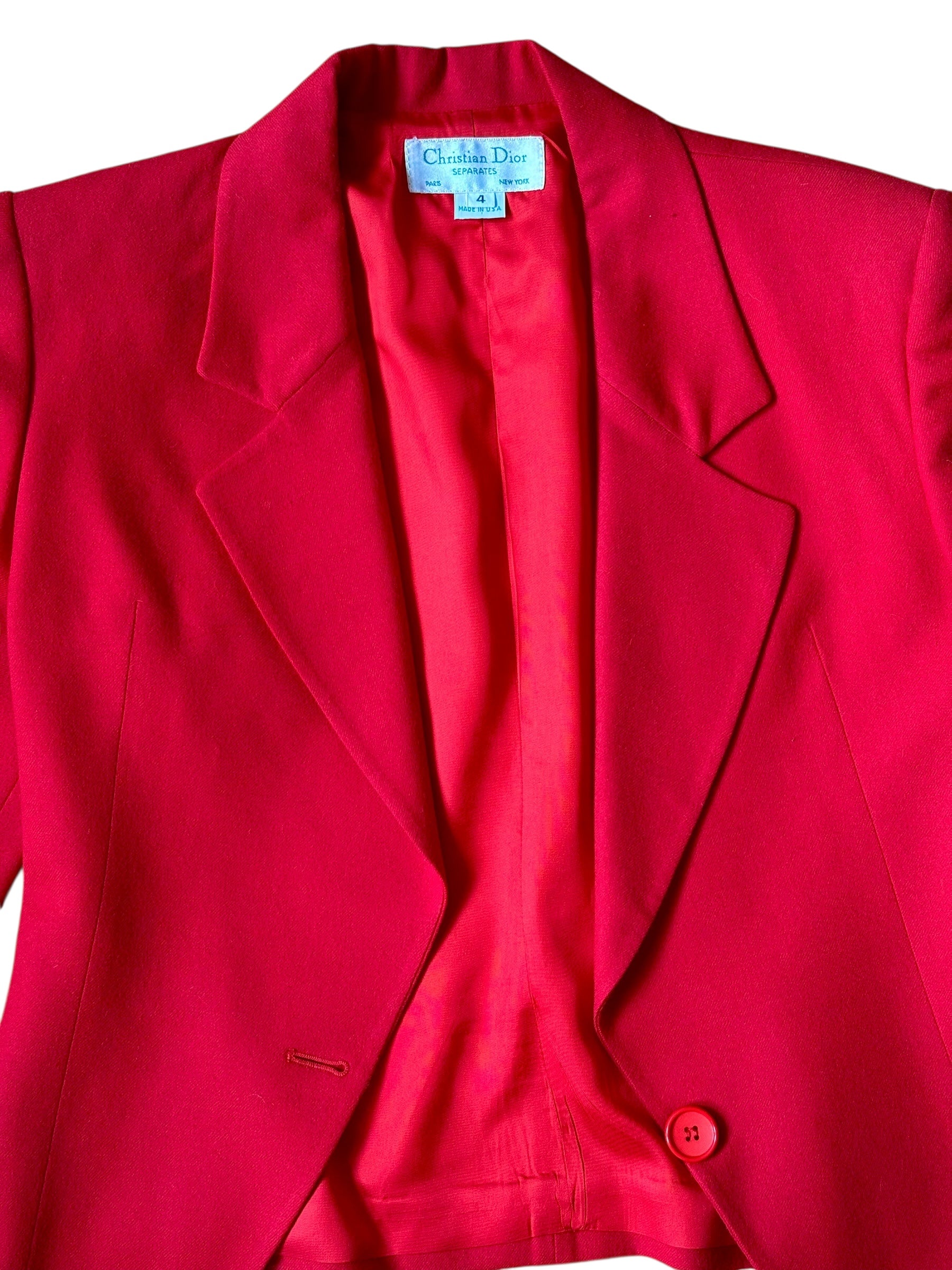 Christian Dior red blazer in the perfect power red. Bold, tailored, and undeniably classic. The ultimate statement layer. Size US 4