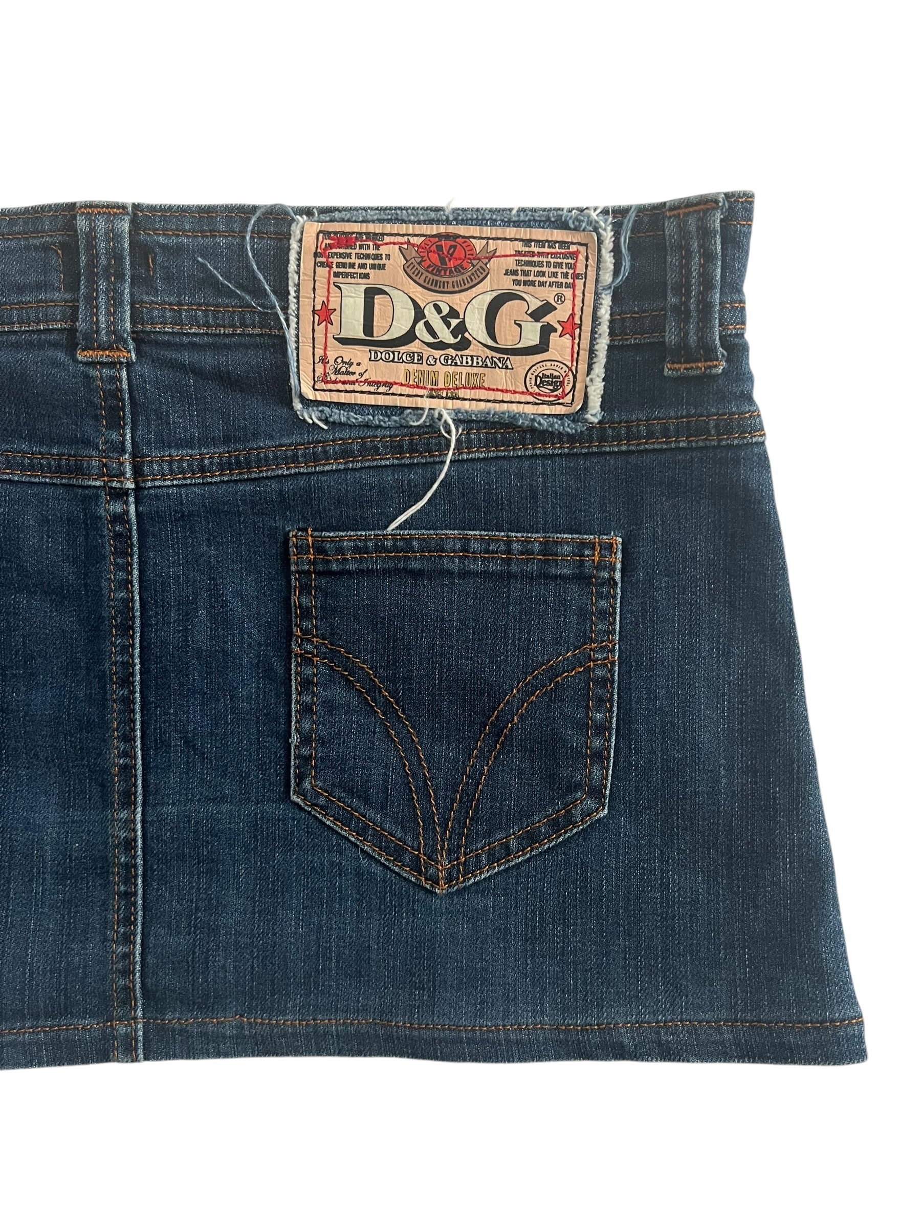 Channel iconic Y2K style with this Dolce & Gabbana denim micro mini skirt. Perfectly cropped with a sleek, fitted silhouette, and iconic logo on the back. it’s a bold statement piece for vintage fashion lovers. Size S