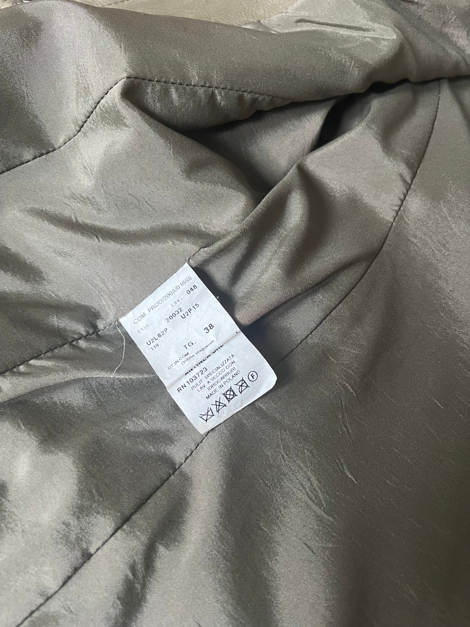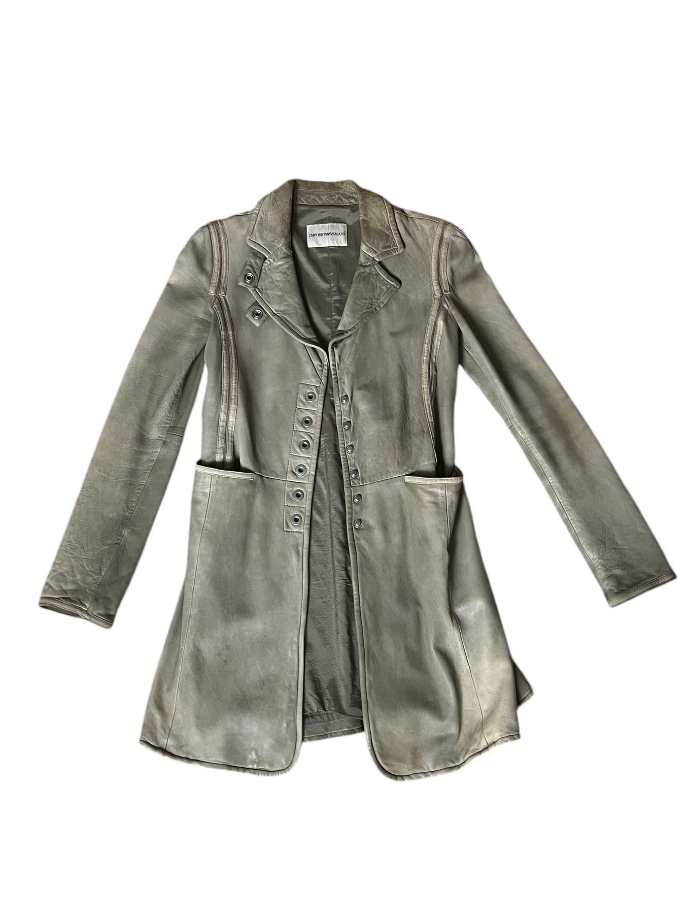 Sophisticated and chic, this vintage Emporio Armani set includes a sleek leather skirt and matching coat. Perfect for making a statement with timeless designer style. Size IT 38 (fits like a small)